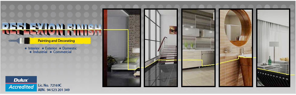 Reflexion Finish is a Dulux accredited business, therefore we only use quality pains for guaranteed results. Whatever your painting requirements are ie. home, office, clubs, schools, interior , exterior etc... we would be more than happy to assit you.